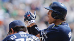 '2008 삼성 PAVV 프로야구' LG 트윈스와 두산 베어스의 경기가 5일 잠실야구장에서 벌어졌다. 두산의 5회초 1사 1,2 홍성흔이 1타점 우전 안타를 치고 1루에서 좋아하고 있다. /잠실=황세준 기자 storkjoon@osen.co.kr [Copyright ⓒ 한국 최고의 스포츠 엔터테인먼트 전문 미디어...
