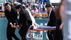 '2008 삼성 PAVV 프로야구' LG 트윈스와 두산 베어스의 경기가 5일 잠실야구장에서 벌어졌다. 두산의 6회초 선두타자 유재웅의 강습타구에 코와 광대뼈 사이를 맞은 LG 유격수 권용관이 들것에 실려나가고 있다. /잠실=황세준 기자 storkjoon@osen.co.kr [Copyright ⓒ 한국 최고의 스포츠 엔터테인먼트 전문...
