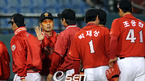 '2008 삼성 PAVV 프로야구' LG 트윈스와 SK 와이번스의 경기가 6일 잠실야구장에서 벌어져 SK가 물고 물리는 접전끝에 7-5로 승리했다. 경기를 마치고 SK 김성근 감독이 선수들과 하이파이브를 나누고 있다. /잠실=황세준 기자 storkjoon@osen.co.kr [Copyright ⓒ 한국 최고의 스포츠 엔터테인먼트...