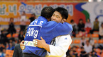 '2008 베이징올림픽 최종선발전 및 제 47회 전국 체급별 남,녀 유도선수권 대회'가 8일 수원 실내체육관에서 벌어졌다. -81kg급 결승서 김재범(한국마사회, 청색)이 송대남(남양주시청)에게 우세승을 거두고 베이징올림픽 출전권을 거머줬다. 경기를 마치고 김재범이 선배인 송대남에게 깎듯이 인사하고 있다. /수원=황세준 기자...