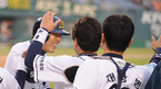 '2008 삼성 PAVV 프로야구' 두산 베어스 와 한화 이글스 경기가 21일 잠실구장 에서 벌어졌다. 한화 1회초 2사 2루 이범호의 1타점 적시타때 2루 주자 김태균 홈인 득점을 올리며 동료들의 축하를 받으며 2-0을 만들고 있다./잠실=김영민 기자ajyoung@osen.co.kr [Copyright ⓒ 한국 최고의 스포츠...
