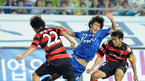 '삼성 하우젠K-리그 2008' 수원 삼성과 포항 스틸러스의 경기가 24일 수원 월드컵경기장에서 벌어졌다. 후반 25분 에두의 결승골로 수원이 1-0으로 승리했다. 후반 포항 수비수 김광석 및 골키퍼 김지혁과 수원 공격수 서동현이 문전에서 충돌하고 있다./수원=민경훈 기자 rumi@osen.co.kr [Copyright ⓒ 한국 최고의...