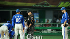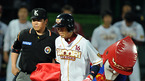 '2008 삼성 PAVV 프로야구' 삼성 라이온즈와 우리 히어로즈의 경기가 27일 서울 목동 야구장에서 벌어졌다. 우리 3회말 공격 2사 오버뮬러의 폭투로 인해 부상을 입은 심광호 포수가 괴로워하고 있다. 오버뮬러가 풍선껌을 불며 바라보고 있다. /목동=민경훈 기자rumi@osen.co.kr [Copyright ⓒ 한국 최고의...