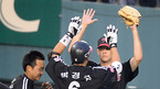 '2008 삼성 PAVV 프로야구' 두산 베어스와 LG 트윈스 경기가 7일 잠실구장 에서 벌어졌다. 8회초 2사 LG 박경수 좌월 역전 솔로 홈런을 날리고 홈인 득점을 올리며 옥스프링 투수로 부터 축하를 받고 있다./잠실=김영민 기자ajyoung@osen.co.kr [Copyright ⓒ 한국 최고의 스포츠 엔터테인먼트 전문...