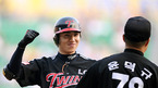 '2008 삼성 PAVV 프로야구' 두산 베어스와 LG 트윈스 경기가 7일 잠실구장 에서 벌어졌다. 4회초 2사 만루 LG 이대형 2타점 동점 안타를 날리고 1루에서 윤덕규 코치의 환영을 받고 있다./잠실=김영민 기자ajyoung@osen.co.kr [Copyright ⓒ 한국 최고의 스포츠 엔터테인먼트 전문 미디어...