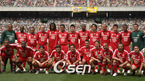 일본의 축구 스타 나카타가 주최한 일본 올스타 팀과 세계 올스타 팀이 출전하는 ‘+1 FOOTBALL MATCH’ 자선 경기가 7일 오후 요코하마에서 닛산 스타디움에서 벌어졌다. 한국에서는 홍명보 올림픽대표팀 코치와 이호(제니트)가 참석했고 톱스타 배용준이 특별 게스트로 경기를 관전했다. 경기에 출전한 선수들이 기념사진을 찍고 있다./요코하마=송석린...