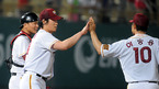 '2008 삼성 PAVV 프로야구' 우리 히어로즈와 KIA 타이거즈의 경기가 10일 목동구장에서 벌어졌다. 이 날 경기에서 우리는 2회말 송지만의 역전투런홈런과 8회말 7타점을 몰아치며 KIA를 10대 2로 꺾고 크게 승리했다. 경기를 마치고 2회말 역전투런홈런을친 송지만과 황재균이 하이파이브를 하고 있다./목동=민경훈 기자...