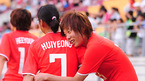 '2008 피스퀸컵 수원 국제여자축구대회' 대한민국과 뉴질랜드의 개막전이 14일 수원 월드컵경기장에서 벌어졌다. 후반 25분 박희영이 역전 결승골을 터트려 한국이 2-1로 승리했다. 경기가 끝나고 차연희가 김희영을 껴안으며 웃고 있다./수원=민경훈 기자 rumi@osen.co.kr [Copyright ⓒ 한국 최고의 스포츠 엔터테인먼트...