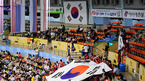 '2008 월드리그 국제 남자배구대회' 대한민국과 러시아의 경기가 14일 수원실내체육관에서 벌어졌다. 관중들이 대형 태극기를 펼치면서 대한민국을 응원하고 있다./수원=민경훈 기자 rumi@osen.co.kr [Copyright ⓒ 한국 최고의 스포츠 엔터테인먼트 전문 미디어 OSEN(www.osen.co.kr) 무단전재 및 재배포...