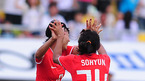 '2008 피스퀸컵 수원 국제여자축구대회' 대한민국과 뉴질랜드의 경기가 14일 수원 월드컵경기장에서 벌어졌다. 후반 23분 권하늘이 한송이의 어시스트를 받아 동점골을 성공시킨 후 조소현과 하이파이브를 하고 있다./수원=민경훈 기자 rumi@osen.co.kr [Copyright ⓒ 한국 최고의 스포츠 엔터테인먼트 전문 미디어...