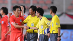 2010 남아프리카공화국 월드컵 3차예선 3조 5차전 한국-투르크메니스탄의 경기가 14일 투르크메니스탄 아슈하바트 올림픽스타디움에서 벌어져 한국이 김두현의 해트트릭에 힘입어 3-1로 승리를 거두었다. 경기를 마친 일본 빗셀 고베 소속 김남일이 일본 심판진과 인사를 나누고 있다./아슈가바트=손용호 기자spjj@osen.co.kr [Copyright ⓒ...