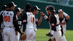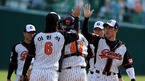 '2008 삼성 PAVV 프로야구' 롯데 자이언츠와 우리 히어로즈 경기가 15일 부산 사직구장에서 벌어졌다. 롯데가 2-3으로 뒤지던 8회말 무사 1,3루서 강민호의 우중간 2루타 때 3루주자 조성환에 이어 1루주자 이대호도 중견수 실책으로 홈인, 역전에 성공한 뒤 6-3으로 이겼다. 경기 후 조성환 등 롯데 선수들이 승리를 자축하고...