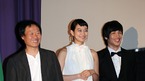 신민아 온주완 유건이 출연하는 로맨틱 액션 코미디 영화 '무림여대생'(감독 곽재용/제작 영화사 파랑새, 지영준) 의 시사회 및 기자간담회가 16일 오후 2시 서울 용산 CGV에서 열렸다. 기자간담회에 참석한 곽재용 감독,신민아,유건이 포토타임 중인 온주완을 보며 웃고 있다./윤민호 기자 ymh@osen.co.kr [Copyright ⓒ...