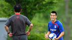허정무 감독이 이끄는 축구 대표팀이 오는 22일 2010 남아공 월드컵 아시아지역 3차 예선 최종전 북한과의 경기를 치르기 위해 17일 오전 파주 NFC에 소집됐다. 훈련 중 조원희가 정해성 수석코치를 보며 미소짓고 있다. /파주=민경훈 기자 rumi@osen.co.kr [Copyright ⓒ 한국 최고의 스포츠 엔터테인먼트 전문 미디어...