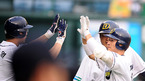 '2008 삼성 PAVV 프로야구' 두산 베어스와 SK 와이번스 경기가 19일 잠실구장에서 벌어졌다. 1회말 2사 1,3루 이성렬 우전 안타때 3루 주자 홍성흔 홈에서 득점 박수를 치며 환호 하고 있다./잠실=김영민 기자ajyoung@osen.co.kr [Copyright ⓒ 한국 최고의 스포츠 엔터테인먼트 전문 미디어...
