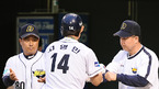 '2008 삼성 PAVV 프로야구' 두산 베어스와 우리 히어로즈 경기가 24일 잠실구장에서 벌어졌다. 4회말 무사 선두타자 두산 고영민 좌월 솔로 홈런을 날리고 홈인 김경문 감독의 환영을 받고 있다./잠실=김영민 기자ajyoung@osen.co.kr [Copyright ⓒ 한국 최고의 스포츠 엔터테인먼트 전문 미디어...
