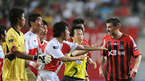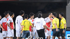 '삼성 하우젠 K-리그 2008' FC 서울과 부산 아이파크 경기가 28일 저녁 서울월드컵 경기장에서 벌어졌다. 경기 종료 직전 서울 이청용의 깊은 태클에 부산 김태영이 넘어진 뒤 홍성요가 달려와 험악한 분위기가 연출되자 심판과 서울 박주영 정조국 등이 말리고 있다./상암=김영민 기자ajyoung@osen.co.kr [Copyright...