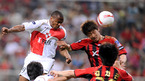 '삼성 하우젠 K-리그 2008' FC 서울과 부산 아이파크 경기가 28일 저녁 서울월드컵 경기장에서 벌어졌다. 전반 서울 박주영이 부산 아이파크의 스크럼을 피해 프리킥을 날리고 있다./상암=김영민 기자ajyoung@osen.co.kr [Copyright ⓒ 한국 최고의 스포츠 엔터테인먼트 전문 미디어...