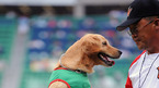 '2008 삼성 PAVV 프로야구' SK 와이번스와 한화 이글스의 경기가 28일 인천 문학구장에서 벌어졌다. 5회말을 마치고 SK볼독인 '미르'와 조련사가 쟁반을 갖고 즐거운 시간을 보내고 있다./인천=민경훈 기자 rumi@osen.co.kr [Copyright ⓒ 한국 최고의 스포츠 엔터테인먼트 전문 미디어...