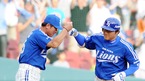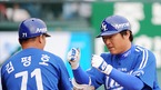 '2008 삼성 PAVV 프로야구' 두산 베어스와 삼성 라이온즈의 경기가 29일 잠실구장에서 벌어졌다.5회초 1사 삼성 최영우가 동점 홈런을 날리고 3루 주루코치 유중일과 하이파이브를 하고 있다./잠실=윤민호 기자 ymh@osen.co.kr [Copyright ⓒ 한국 최고의 스포츠 엔터테인먼트 전문 미디어...