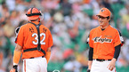 '2008 삼성 PAVV 프로야구' SK 와이번스와 한화 이글스 경기가 29일 인천문학구장에서 벌어졌다. 6회말 무사 1루 SK 김재현 타석때 한화 선발 유원상 투수에 이어 구대성이 팀의 두번째 투수로 마운드에 오르며 신경현 포수와 이야기를 나누며 웃음을 지어 보이고 있다./인천=김영민 기자ajyoung@osen.co.kr...