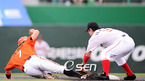 '2008 삼성 PAVV 프로야구' SK 와이번스와 한화 이글스 경기가 29일 인천문학구장에서 벌어졌다. 3회말 1사 1루 이진영 내야땅볼때 1루 주자 SK 조동화 2루에서 포스아웃 병살 처리 되고 있다./인천=김영민 기자ajyoung@osen.co.kr [Copyright ⓒ 한국 최고의 스포츠 엔터테인먼트 전문 미디어...