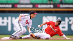 '2008 삼성 PAVV 프로야구' LG 트윈스와 SK 와이번스 경기가 1일 잠실구장에서 벌어졌다. 1회초 무사 1루 이진영 타석때 1루 주자 SK 정근우 2루 도루 아웃 되고 있다./잠실=김영민 기자ajyoung@osen.co.kr [Copyright ⓒ 한국 최고의 스포츠 엔터테인먼트 전문 미디어...