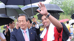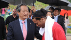 자신의 시그니쳐 축구화 ‘나이키 호나우디뉴 도이스 FG (Nike Ronaldinho Dois FG)’의 제품 출시 일정에 맞춰 7월 2일 한국을 찾은 호나우디뉴와 슈퍼주니어의 강인이 이 날 서울 여의도 한강고수부지에서 3대3 미니 축구 대결을 펼쳤다. 미니게임 전 정몽준 대한축구협회장과 호나우디뉴가 악수를 하며 손을 흔들고 있다./민경훈 기자...