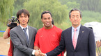 자신의 시그니쳐 축구화 ‘나이키 호나우디뉴 도이스 FG (Nike Ronaldinho Dois FG)’의 제품 출시 일정에 맞춰 7월 2일 한국을 찾은 호나우디뉴와 슈퍼주니어의 강인이 이 날 서울 여의도 한강고수부지에서 3대3 미니 축구 대결을 펼쳤다. 미니게임 전 정몽준 대한축구협회장, 호나우디뉴, 홍명보 코치가 포토타임을 갖고 있다./민경훈 기자...