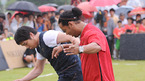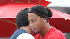 자신의 시그니쳐 축구화 ‘나이키 호나우디뉴 도이스 FG (Nike Ronaldinho Dois FG)’의 제품 출시 일정에 맞춰 7월 2일 한국을 찾은 호나우디뉴와 슈퍼주니어의 강인이 이 날 서울 여의도 한강고수부지에서 3대3 미니 축구 대결을 펼쳤다. 호나우디뉴와 강인이 미니축구게임과 인터뷰를 마치고 서로 포옹을 하고 있다./민경훈 기자...
