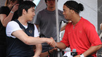 자신의 시그니쳐 축구화 ‘나이키 호나우디뉴 도이스 FG (Nike Ronaldinho Dois FG)’의 제품 출시 일정에 맞춰 7월 2일 한국을 찾은 호나우디뉴와 슈퍼주니어의 강인이 이 날 서울 여의도 한강고수부지에서 3대3 미니 축구 대결을 펼쳤다. 인터뷰를 마치고 강인과 호나우디뉴가 악수를 하고 있다./민경훈 기자 rumi@osen.co.kr...
