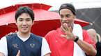 자신의 시그니쳐 축구화 ‘나이키 호나우디뉴 도이스 FG (Nike Ronaldinho Dois FG)’의 제품 출시 일정에 맞춰 7월 2일 한국을 찾은 호나우디뉴와 슈퍼주니어의 강인이 이 날 서울 여의도 한강고수부지에서 3대3 미니 축구 대결을 펼쳤다. 호나우디뉴와 강인이 미니축구게임과 인터뷰를 마치고 포토타임을 갖고 있다./민경훈 기자...