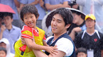자신의 시그니쳐 축구화 ‘나이키 호나우디뉴 도이스 FG (Nike Ronaldinho Dois FG)’의 제품 출시 일정에 맞춰 7월 2일 한국을 찾은 호나우디뉴와 슈퍼주니어의 강인이 이 날 서울 여의도 한강고수부지에서 3대3 미니 축구 대결을 펼쳤다. 호나우디뉴와 강인의 미니 축구경기에서 강인이 골을 넣은 아이를 안고 있다./민경훈 기자...