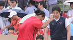 자신의 시그니쳐 축구화 ‘나이키 호나우디뉴 도이스 FG (Nike Ronaldinho Dois FG)’의 제품 출시 일정에 맞춰 7월 2일 한국을 찾은 호나우디뉴와 슈퍼주니어의 강인이 이 날 서울 여의도 한강고수부지에서 3대3 미니 축구 대결을 펼쳤다. 호나우디뉴가 축구 꿈나무들과 악수를 나누고 있다./민경훈 기자 rumi@osen.co.kr...