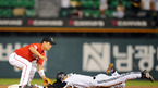 '2008 삼성 PAVV 프로야구' LG 트윈스와 SK 와이번스의 경기가 3일 잠실구장에서 벌어졌다. 8회말 1사 주자 1루 LG 김정민의 1루수 앞 안타로 1루수 주자 김용의가 2루에 도착했을때 볼이 빠지고 있다./잠실=민경훈 기자 rumi@osen.co.kr [Copyright ⓒ 한국 최고의 스포츠 엔터테인먼트 전문 미디어...