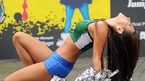 '2008 NBA 매드니스 코리아' 행사가 4일 서울 용산 아이파크 몰에서 열렸다. 이 자리에는 NBA LA 레이커스의 떠오르는 스타인 포인트가드 조던 파머, 댈러스 매버릭스 치어리더팀, 뉴올리언스 호니츠의 마스코트 휴고가 참여했다. 댈러스 매버릭스 치어리더팀의 제이미가 화려한 응원공연을 선보이고 있다./민경훈 기자...