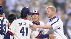 '2008 삼성 PAVV 프로야구' 두산 베어스와 우리 히어로즈 경기가 6일 잠실구장에서 벌어졌다.4-2로 승리를 거둔 두산베어스 선발 랜들과 마무리 정재훈이 서로 격려하고 있다./잠실=윤민호 기자 ymh@osen.co.kr [Copyright ⓒ 한국 최고의 스포츠 엔터테인먼트 전문 미디어 OSEN(www.osen.co.kr)...