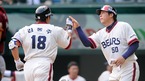 '2008 삼성 PAVV 프로야구' 두산 베어스와 우리 히어로즈 경기가 6일 잠실구장에서 벌어졌다.1회말 2사 1루 두산 김동주가 좌월 투런 홈런을 때리고 홈에서 김현수와 하이파이브하고 있다./잠실=윤민호 기자 ymh@osen.co.kr [Copyright ⓒ 한국 최고의 스포츠 엔터테인먼트 전문 미디어...
