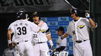 '2008 삼성 PAVV 프로야구' 두산 베어스와 LG 트윈스 경기가 8일 잠실구장에서 벌어졌다. 9회말 1사 3루 김현수 안타때 3루 주자 두산 이종욱 동점 득점을 올리며 홍성흔 김동주로 부터 환영을 받고 있다./잠실=김영민 기자ajyoung@osen.co.kr [Copyright ⓒ 한국 최고의 스포츠 엔터테인먼트 전문 미디어...