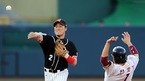 2008 삼성 PAVV 프로야구’ 우리 히어로즈와 롯데 자이언츠 경기가 8일 목동구장에서 벌어졌다.3회말 1사 우리 김일경의 내야땅볼 때 롯데 조성환이 2루에서 우리 전준호를 포스아웃시키고 1루에 송구하고 있다.우리 김일경은 1루에서 세이프 되었다./목동=윤민호 기자 ymh@osen.co.kr [Copyright ⓒ 한국 최고의 스포츠...