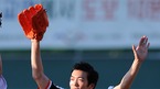 '2008 삼성 PAVV 프로야구' 우리 히어로즈와 롯데 자이언츠 경기가 8일 오후 목동구장에서 벌어졌다. 경기에 앞서 롯데 응원단장 조지훈이 시구를 하고 관중들에게 인사를 하고 있다./목동=윤민호 기자 ymh@osen.co.kr [Copyright ⓒ 한국 최고의 스포츠 엔터테인먼트 전문 미디어...