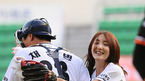 '2008 삼성 PAVV 프로야구' 두산 베어스와 LG 트윈스 경기가 8일 잠실구장에서 벌어졌다. 경기에 앞서 가수 바다가 승리기원 시구를 마친후 두산 채상병 포수와 포옹으로 인사를 하고 있다./잠실=김영민 기자ajyoung@osen.co.kr [Copyright ⓒ 한국 최고의 스포츠 엔터테인먼트 전문 미디어...