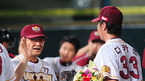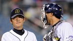 '2008 삼성 PAVV 프로야구' 우리 히어로스와 롯데 자이언츠의 경기가 9일 목동야구장에서 벌어져 우리가 장원삼의 역투와 브룸바 이택근의 호타로 롯데에 9-4 승리를 거두었다. 8회말 1사에 마운드에 올라 1⅔이닝을 무실점으로 세이브를 거둔 다카쓰를 이광환 감독이 반갑게 맞이하고 있다./목동=손용호 기자spjj@osen.co.kr...