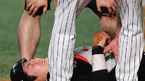 '2008 삼성 PAVV 프로야구' 우리 히어로스와 롯데 자이언츠의 경기가 9일 목동야구장에서 벌어졌다. 8회말 2사 1,2루 김일경의 우전안타때 홈을 파고들던 황재균이 롯데 포수 강민호와 충돌 강민호가 부상을 입어 병원으로 이송됐다. 강민호가 괴로워 하고 있다./목동=손용호 기자spjj@osen.co.kr [Copyright ⓒ...