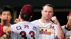'2008 삼성 PAVV 프로야구' 우리 히어로스와 롯데 자이언츠의 경기가 9일 목동야구장에서 벌어져 우리가 장원삼의 역투와 브룸바 이택근의 호타로 롯데에 9-4 승리를 거두었다. 연 이틀 세이브를 거둔 다카쓰를 브룸바가 반갑게 맞이하고 있다./목동=손용호 기자spjj@osen.co.kr [Copyright ⓒ 한국 최고의 스포츠...