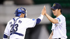 '2008 삼성 PAVV 프로야구' 두산 베어스와 LG 트윈스의 경기가 10일 잠실구장에서 벌어졌다. 두산은 이날 선발 이원재의 호투와 응집력으로 4-0 완승을 거뒀다. 경기를 마치고 금민철 투수와 최승환 포수가 하이파이브를 하고 있다. /잠실=민경훈 기자 rumi@osen.co.kr [Copyright ⓒ 한국 최고의 스포츠...