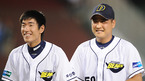 '2008 삼성 PAVV 프로야구' 두산 베어스와 LG 트윈스의 경기가 10일 잠실구장에서 벌어졌다. 두산은 이날 선발 이원재의 호투와 응집력으로 4-0 완승을 거뒀다. 경기를 마치고 두산 김재호와 이혜천이 환하게 웃고 있다. /잠실=민경훈 기자 rumi@osen.co.kr [Copyright ⓒ 한국 최고의 스포츠 엔터테인먼트...