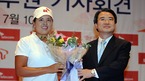 US 여자 오픈 골프서 최연소 우승을 기록한 박인비가 10일 오전 SK텔레콤 T타워에서 SK텔레콤과 2년간 스폰서계약을 맺었다. SK텔레콤 남영찬 부사장의 휴대폰 선물을 받은 박인비가 환한 미소를 짓고 있다./윤민호 기자 ymh@osen.co.kr [Copyright ⓒ 한국 최고의 스포츠 엔터테인먼트 전문 미디어...