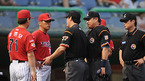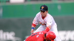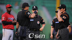 '2008 삼성 PAVV 프로야구' SK 와이번스와 KIA 타이거즈의 경기가 11일 인천 문학구장에서 벌어졌다. 4회말 1사 3루 SK 김재현 타석에서 KIA 선발 디아즈가 김재현의 등 뒤로 폭투를 던지는 사이 3루 주자 정근우가 홈으로 파고 들었다. 그러자 KIA 조범현 감독은 폭투가 아니라 김재현의 몸에 맞지 않았느냐며 심판진에게...