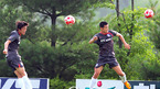 2008 베이징 올림픽 최종 엔트리 확정을 위해 오는 16일 벌어질 과테말라와 평가전을 이틀 앞둔 올림픽대표팀이 14일 파주 NFC에서 무더운 날씨에도 불구하고 구슬땀을 흘리며 훈련에 열중했다. 이청용(왼쪽)과 김승용이 헤딩훈련을 하고 있다./파주=손용호 기자spjj@osen.co.k [Copyright ⓒ 한국 최고의 스포츠 엔터테인먼트 전문...